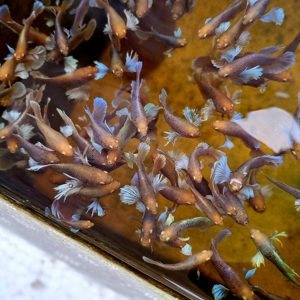 Brighten your aquarium with the Dumbo Pineapple Female Betta Fish Sorority. These charming bettas display a radiant yellow-orange body resembling the warm tones of a pineapple, beautifully accented by their signature Dumbo fins. Their unique color and graceful movement add a lively and vibrant atmosphere to any sorority tank, making them a delightful addition to your aquatic family.