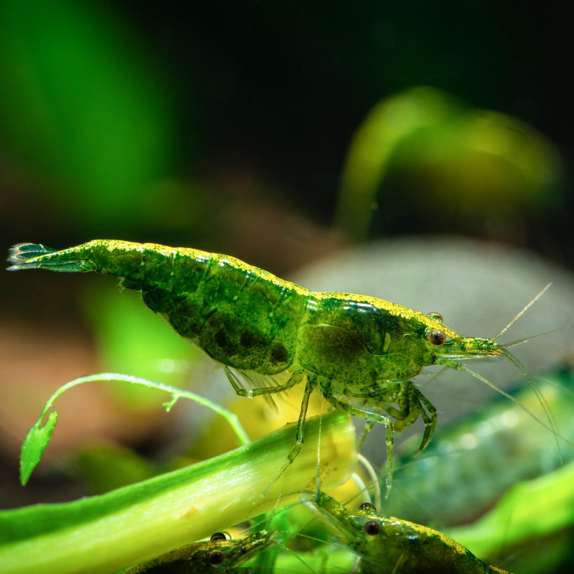 Nestled among the watery greens of an aquarium, the Green Jade Neocaridina Shrimp is a living, moving gem, its vibrant emerald body a splash of life that seems to dance with the light. They bring a touch of the wild, an echo of lush, rain-kissed forests right into your home, creating a serene yet lively spectacle. As they glide gracefully over leaves and stones, they're not just a feast for the eyes; they whisper tales of hidden worlds beneath the surface, making every observer pause and marvel. Gentle and low-maintenance, these green wonders weave a spell of tranquility, turning your tank into a sanctuary of natural beauty.